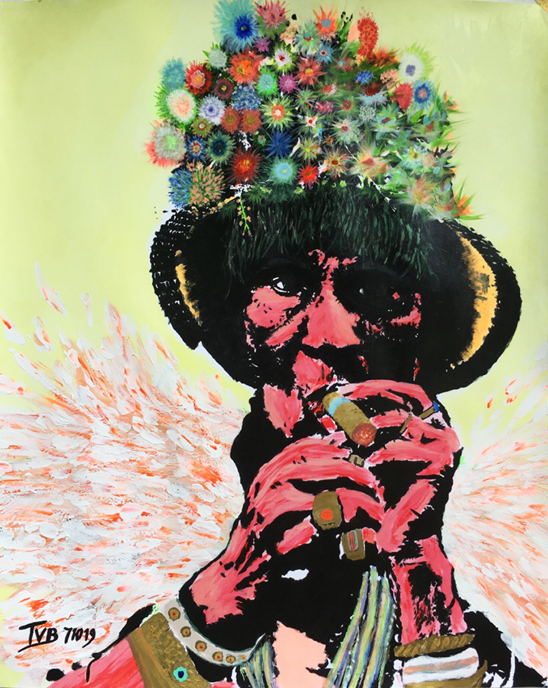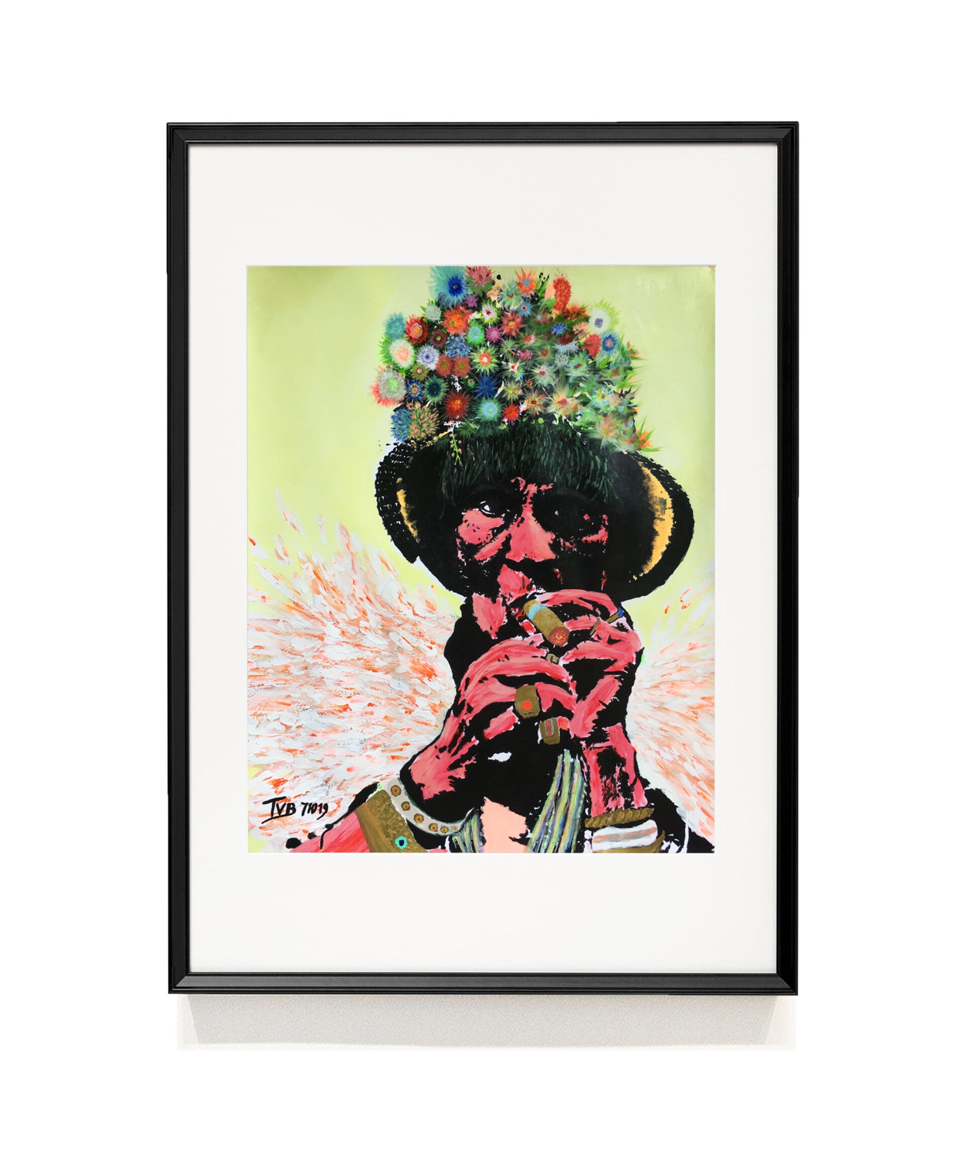 Aquarel en acryl portret op fine art papier 50 x 40 cm.Prijs is exclusief lijst.Het is ook mogelijk om het werk ingelijst te kopen. De meerprijs is in dat geval afhankelijk van het soort lijst.